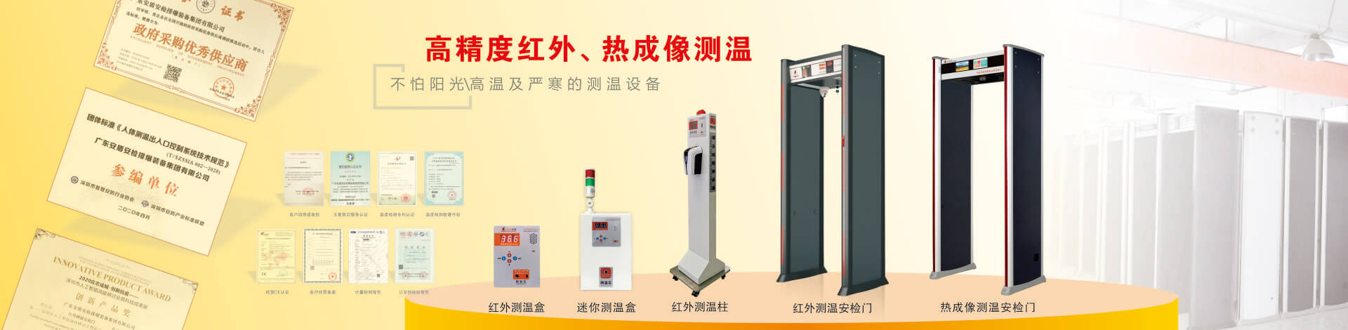 目前公司技術(shù)底蘊(yùn)日益豐厚,擁有多項(xiàng)國家專利,在產(chǎn)品開發(fā)和創(chuàng)新方面有較深的制造經(jīng)驗(yàn)。“安盾品質(zhì) 堅(jiān)如磐石”是安盾人永恒不變的發(fā)展理念,公司目前已通過國際質(zhì)量體系認(rèn)證、國際環(huán)境體系認(rèn)證、國際職業(yè)健康體系認(rèn)證、產(chǎn)品已通過國家安全防范報(bào)警系統(tǒng)檢測中心和公安部安全與用電子產(chǎn)品質(zhì)量檢測中心合格認(rèn)證,并取得所有型號檢測報(bào)告,《GB15210-2003通過式金屬探測門》標(biāo)準(zhǔn);并獲得國家高新技術(shù)企業(yè)認(rèn)證、國家AAA級信用認(rèn)證,歐盟CE認(rèn)證、ROHS認(rèn)證、美國FCC認(rèn)證、廣東職業(yè)衛(wèi)生檢測中心頒發(fā)的檢測報(bào)告、東莞市環(huán)境保護(hù)局頒發(fā)的《輻射安全許可證》,中國人民解放軍認(rèn)證產(chǎn)品、中華人民共和國進(jìn)出口企業(yè)、愛心公益企業(yè)等榮譽(yù)稱號;先后被當(dāng)選為中國安全防范產(chǎn)品行業(yè)協(xié)會會員單位、廣東安防行業(yè)協(xié)會理事單位、東莞市安防行業(yè)協(xié)會常務(wù)副會長單位、中國安檢排爆聯(lián)盟常務(wù)理事單位、連續(xù)五年榮獲廣東省守合同重信用企業(yè)、中國警用裝備十大品牌、中國十大特種裝備品牌、科技型中小企業(yè)、廣東省高新技術(shù)產(chǎn)品等榮譽(yù)稱號、安盾集團(tuán)平均每年服務(wù)至少200場大型活動安保任務(wù)。